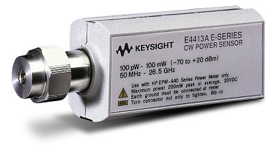 E4The Keysight (Agilent) E4413A CW diode power sensor measures average power over the frequency range 50 MHz to 26.5 GHz and power range -70 to +20 dBm (90 dB dynamic range).