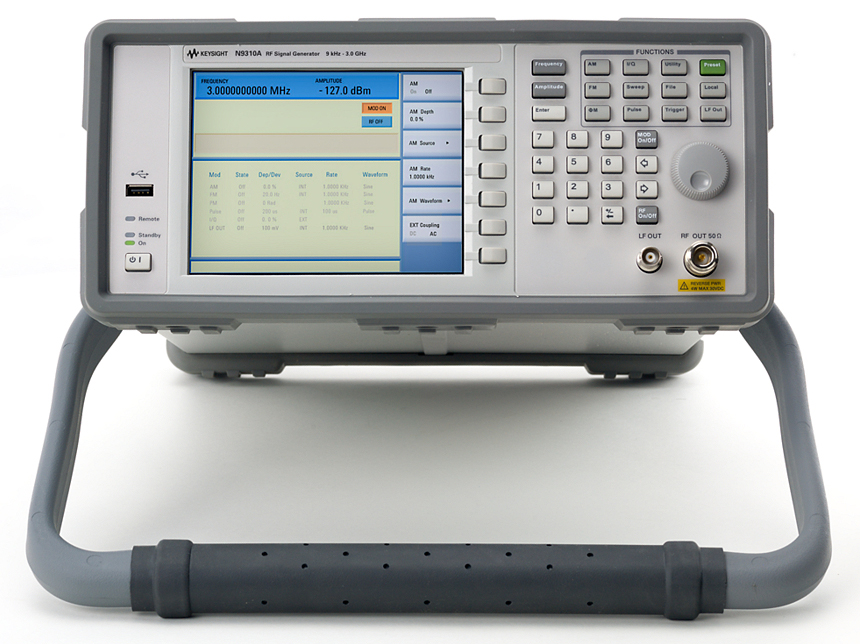 The Keysight (Agilent) N9310A is a general purpose RF signal generator covering a frequency range from 9 kHz to 3 GHz. With a low price, reliable performance, and multiple built-in functions, it’s well-suited for R&D, manufacturing, education, and service maintenance.